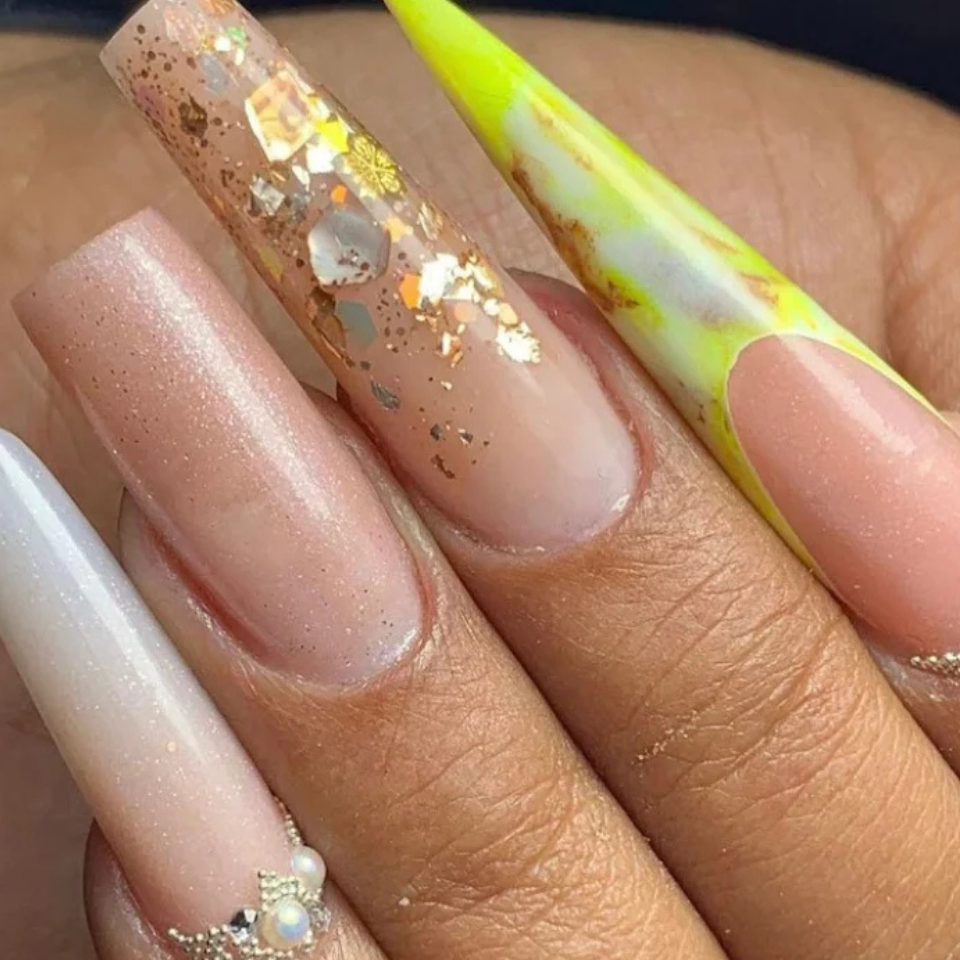 As unhas de acrílico são ideais para alongamento e personalização, permitindo designs únicos e duradouros.